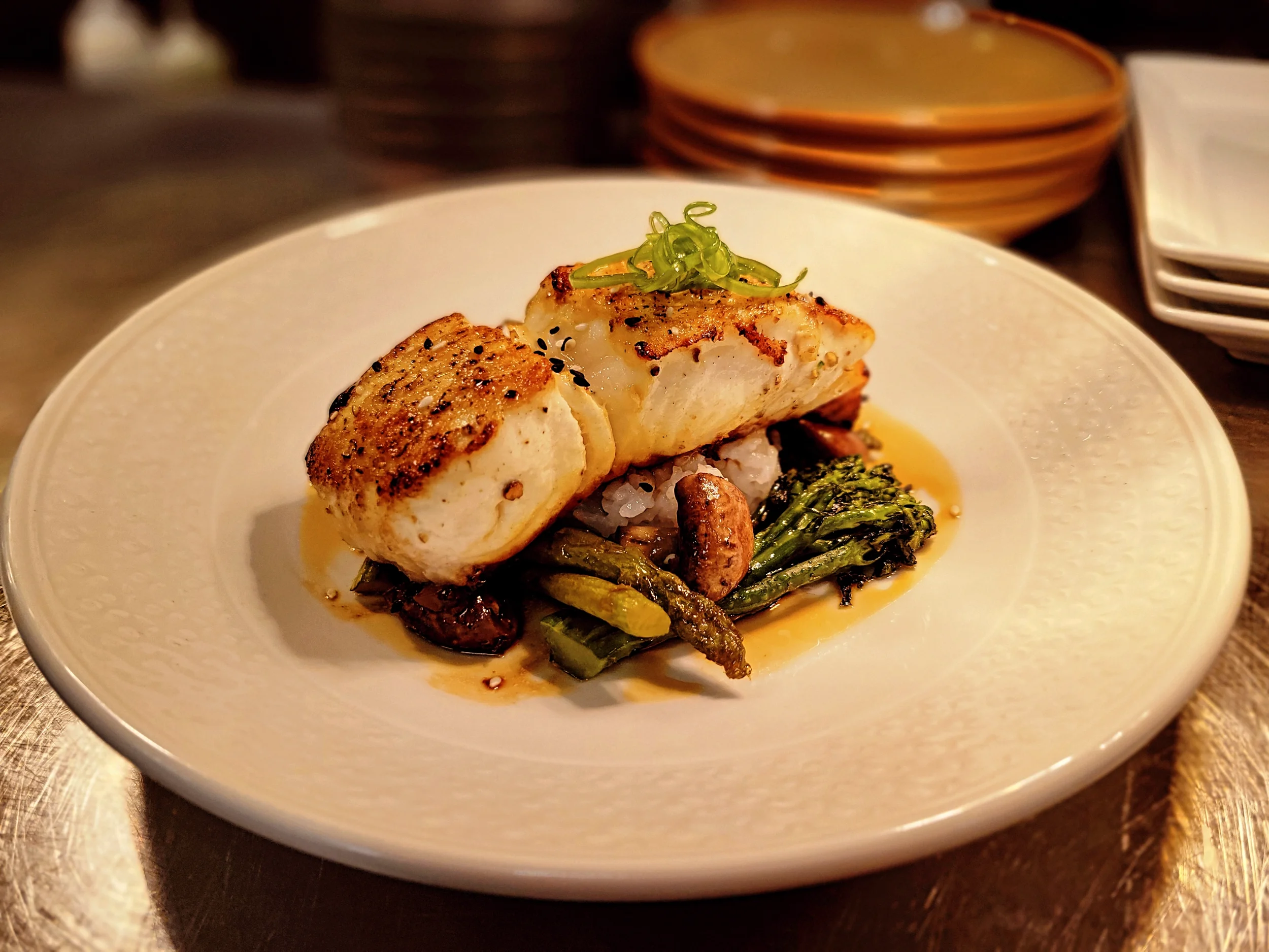 • Fish cooked over live heat